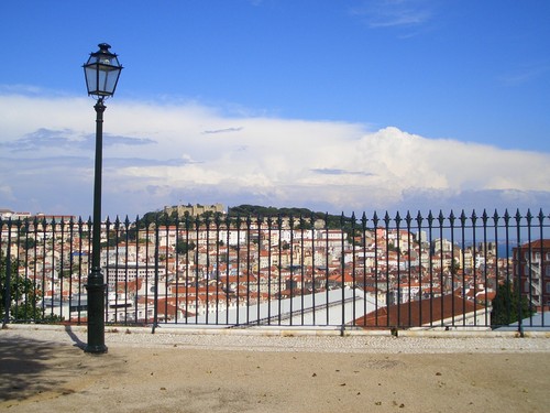 Gosto de caminhar. Sozinha, com os meus pensamentos mas sempre atenta por onde vou passando. Faço todos os sábados depois do trabalho, em média 4 ou 5 km. Não é muito mas é melhor que nada. Mas de vez em quando gosto de sair pelas ruas, meio sem destino, só para apreciar a cidade. Já há muito tempo que não o fazia por isso no dia do jogo final do campeonato, em vez de ficar em casa a roer as unhas e a encher-me de nervos, fui andar. Comecei na av do Brasil, pela av de Roma a fora. Percorri a zona da av da Igreja e descobri que adorava morar ali. Gente, movimento, esplanadas, pastelarias, lojas, dá gosto viver num bairro assim (já que o meu, nos últimos anos, está cada vez pior). Continuei para a Praça de Londres, av Guerra Junqueiro, Alameda. Do outro lado da Alameda segui para a Morais Soares, subi à Penha de França. Cheguei lá acima sem fôlego, eita rua inclinada. Paragem no miradouro para recuperar e apreciar a vista. Fui andando até descobrir a entrada do miradouro do Monte Agudo e, graças á dica d'O melhor blog do mundo, lá dei com a entrada. Mais uma vista deslumbrante de Lisboa. Desci para a Almirante Reis, subi á Estefânia, Arco do Cego, Duque d'Ávila, S. Sebastião, Jardim Amália Rodrigues, Palácio da Justiça e acabei na Praça de Espanha. Tirei fotos, descobri recantos novos, novas ruas, e, claro, sempre de olho no telemóvel para ir sabendo como estavam as coisas ali para os lados da Luz. Cheguei a casa quando faltavam 15 minutos para o fim do jogo e ganhávamos por 3-0. Resultado final: 18 km e o Benfica tricampeão!!
